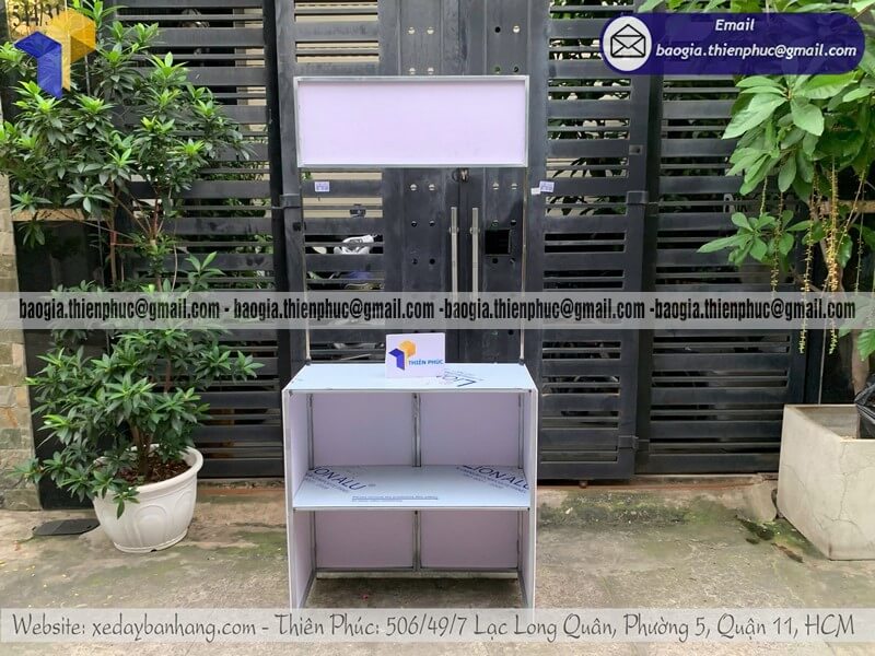 + Mặt trên quầy và vách ngăn bên trong bằng khung sắt ốp alu chống thấm nước