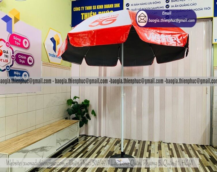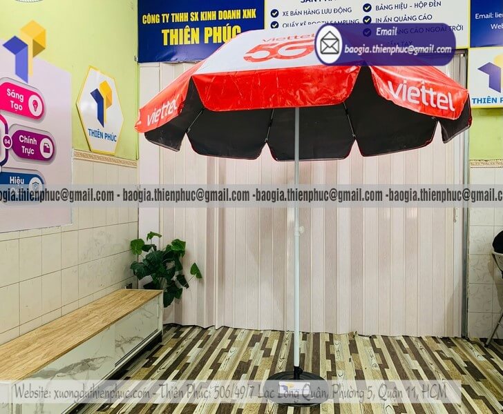 Tên Sản Phẩm: Dù che nắng quảng cáo ngoài trời in logo nhãn hàng Viettel