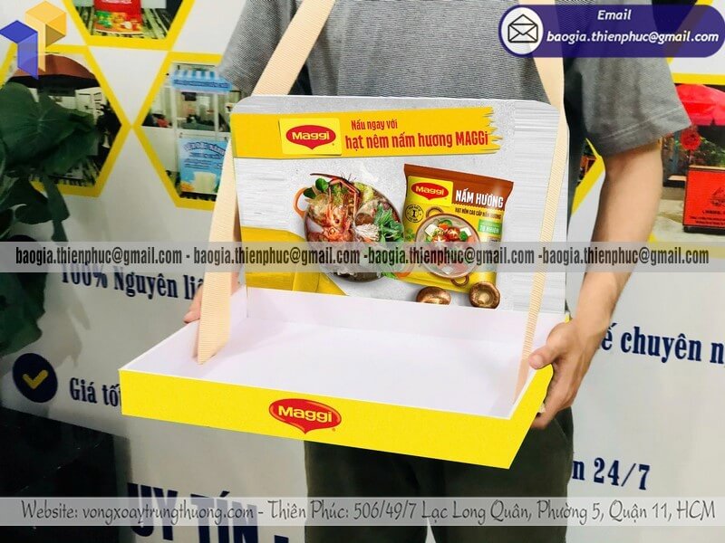 Thiết kế nhỏ gọn, dễ đeo, phù hợp cho các hoạt động roadshow, phát mẫu thử tại siêu thị, trung tâm thương mại, sự kiện ngoài trời.