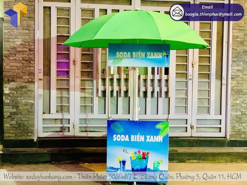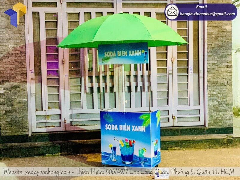 Dù che giúp hạn chế tác động của nắng gắt, mưa nhẹ, đồng thời tạo cảm giác chuyên nghiệp và dễ chịu cho khách hàng khi dừng lại mua hàng. Ngoài ra, phần dù có thể tận dụng để gắn logo, tên thương hiệu hoặc thông tin sản phẩm, giúp tăng khả năng nhận diện từ xa.