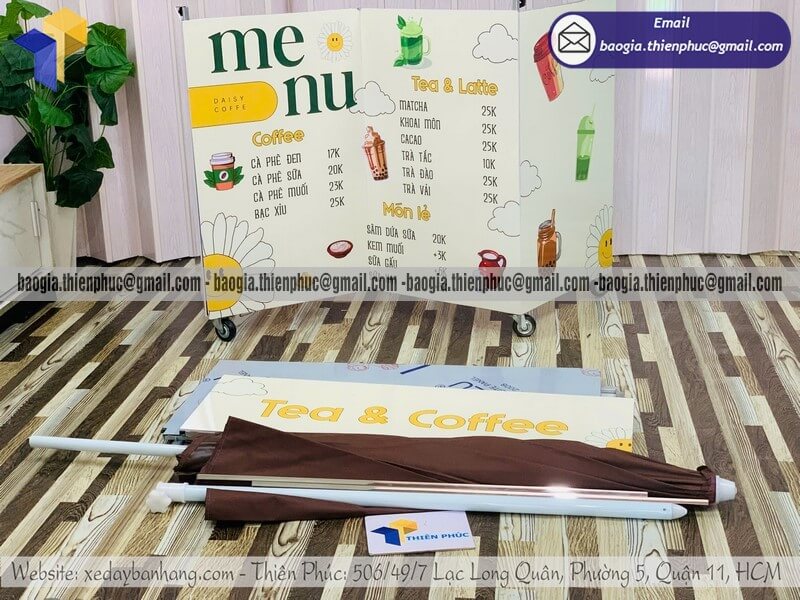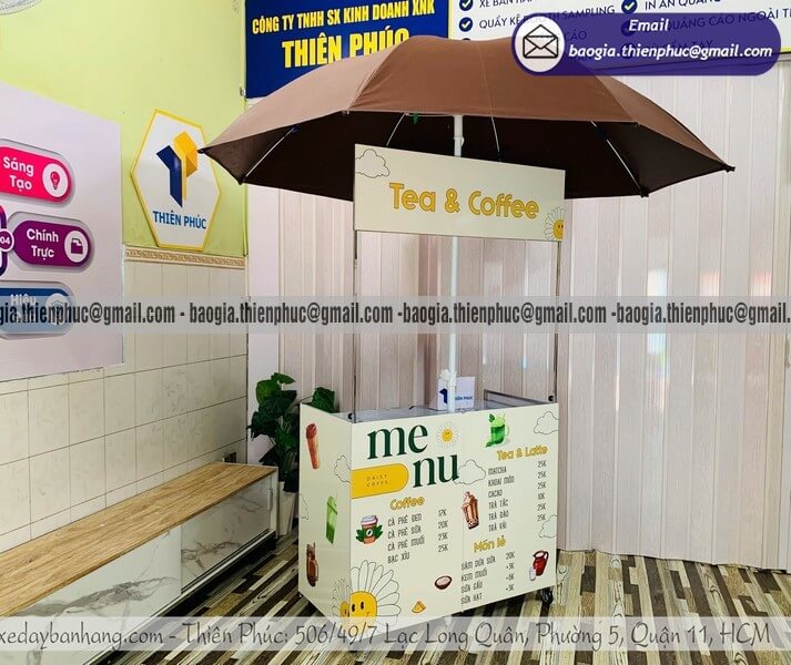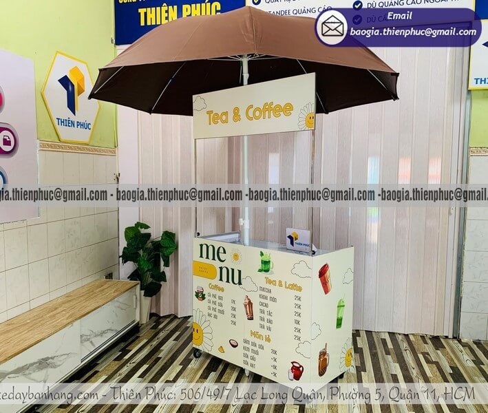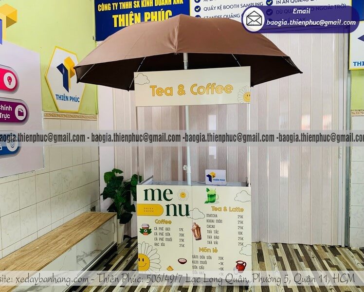Nếu bạn đang tìm mẫu quầy bán cà phê mang đi đẹp, dễ di chuyển, phù hợp bán ngoài trời và có thể gắn thêm dù che theo nhận diện thương hiệu, đây là giải pháp giúp mô hình kinh doanh take away của bạn vận hành chuyên nghiệp ngay từ ngày đầu.