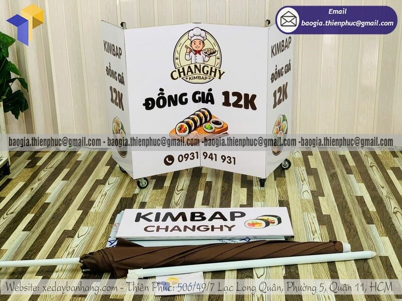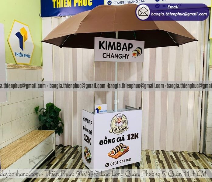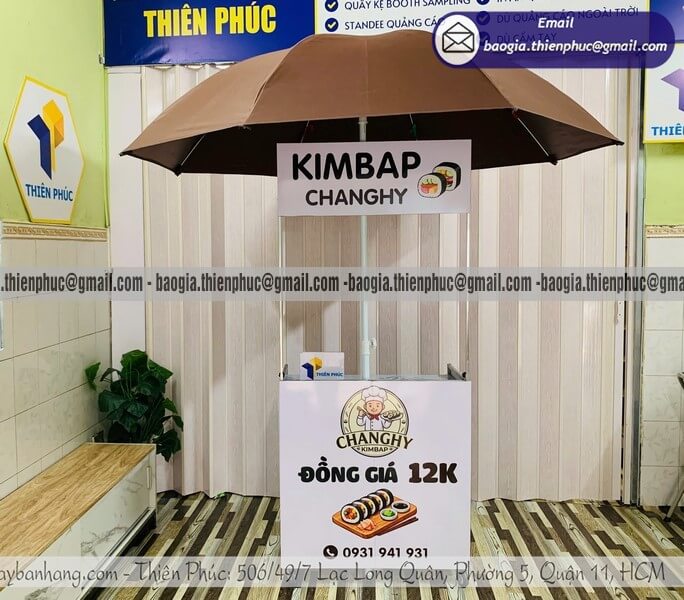 Từ khóa: quầy bán cơm cuộn, quầy bán cơm cuộn lưu động, quầy bán cơm cuộn gấp gọn, quầy bán cơm cuộn vỉa hè, quầy bán cơm cuộn có dù che, quầy bán cơm cuộn take away, quầy bán sushi lưu động, quầy bán kimbap di động, quầy bán đồ ăn vặt ngoài trời, quầy bán cơm cuộn giá rẻ