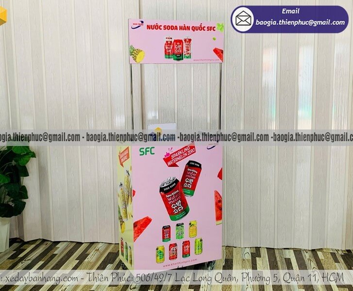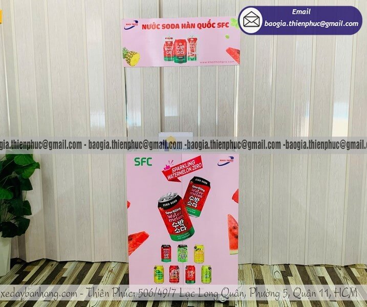 Phần khung và bánh xe được thiết kế bền để dùng lâu dài qua nhiều chiến dịch. Khi thay đổi thông điệp hay ra mắt sản phẩm mới, bạn chỉ cần thay phần mặt in – chi phí thấp hơn nhiều so với làm lại toàn bộ quầy. Đây là lý do nhiều nhãn hàng FMCG lớn đầu tư quầy chất lượng cao ngay từ lần đầu.