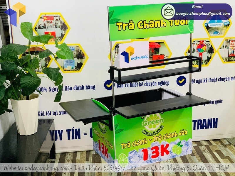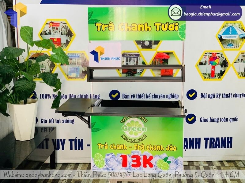 Điểm đặc biệt giúp mô hình này nổi bật chính là thùng bán nước gắn sau xe – một giải pháp tiện lợi, gọn gàng và hiện đại, hỗ trợ tối đa cho việc bán trà chanh di động hiệu quả.