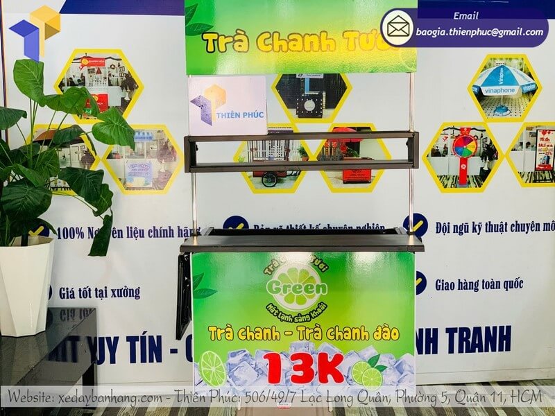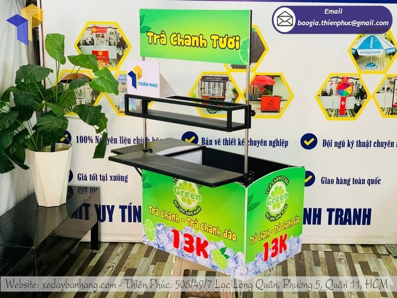 Dán logo, banner hoặc slogan bắt mắt lên thùng xe để tạo dấu ấn riêng. Đây là cách vừa quảng cáo thương hiệu, vừa thu hút thêm khách hàng mới cho mô hình bán trà chanh di động.