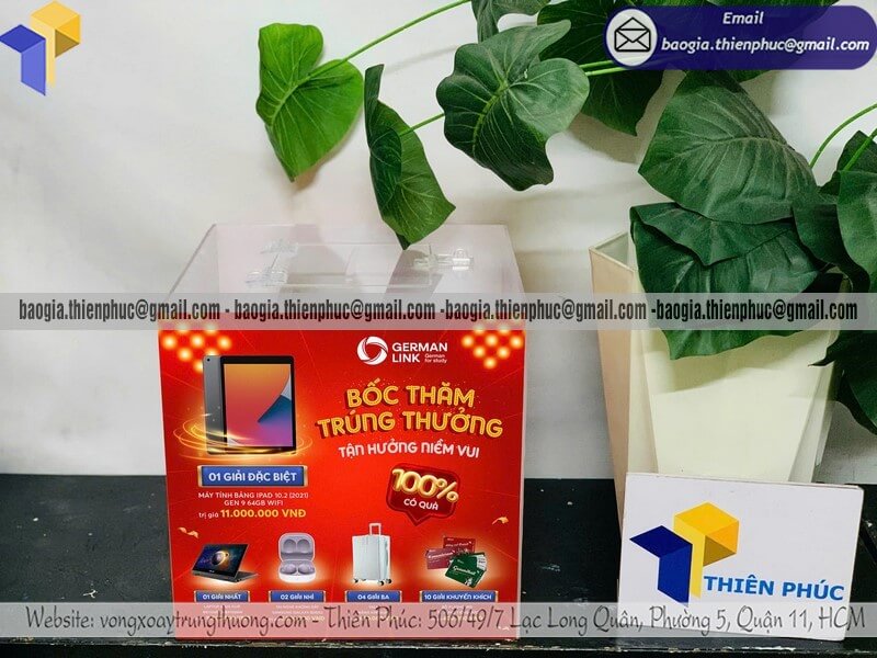 Trong các chương trình bốc thăm trúng thưởng, khảo sát ý kiến, bình chọn khách hàng hay sự kiện ra mắt sản phẩm, thùng phiếu luôn là vật dụng không thể thiếu. Đặc biệt, thùng phiếu mica trong suốt ngày càng được nhiều doanh nghiệp và đơn vị tổ chức sự kiện lựa chọn nhờ tính minh bạch, hình thức chuyên nghiệp và khả năng ứng dụng linh hoạt. Không chỉ là nơi thu phiếu, sản phẩm này còn góp phần nâng cao độ tin cậy và hình ảnh cho toàn bộ chương trình.