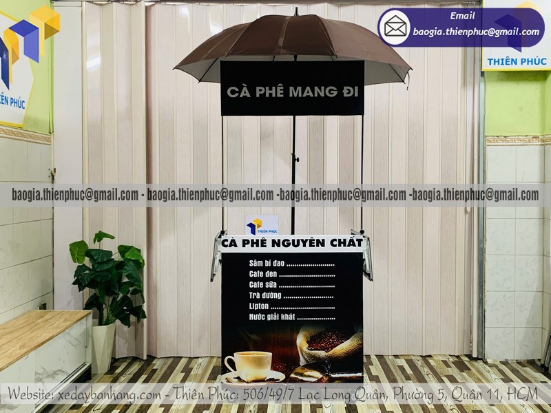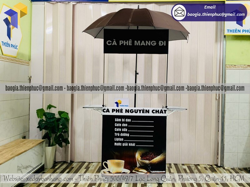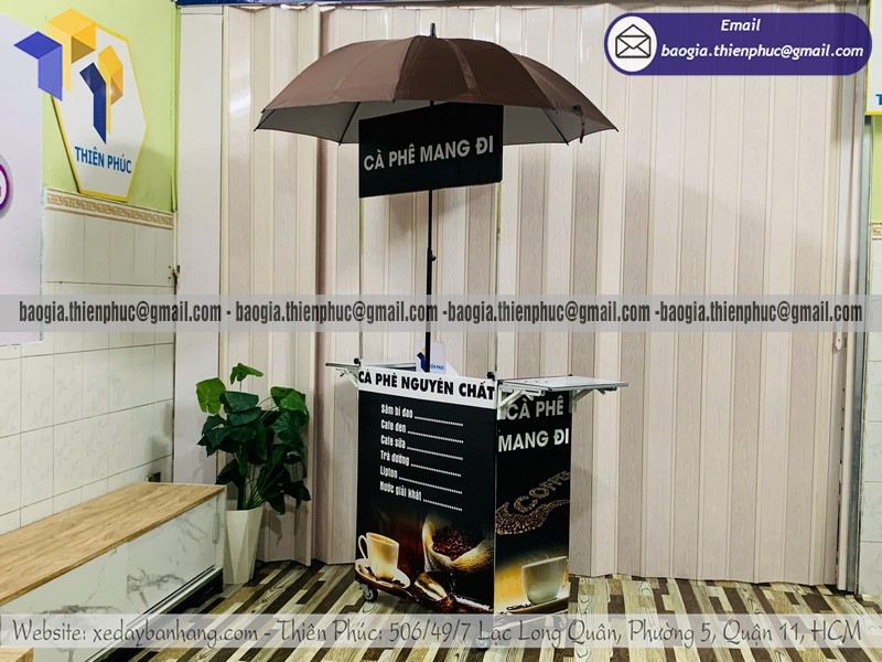 Thích hợp: cho các bạn trẻ kinh doanh ít vốn mở bán trà sữa, cà phê lưu động, hoặc các đại lý muốn mở rộng kênh bán hàng lưu động xe bán cafe gắn dù