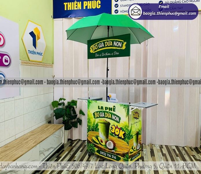 Thích hợp: cho các bạn trẻ kinh doanh ít vốn mở bán trà sữa, cà phê lưu động, hoặc các đại lý muốn mở rộng kênh bán hàng lưu động xe bán cafe gắn dù