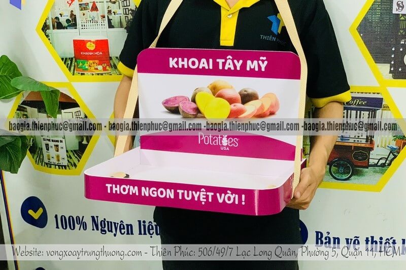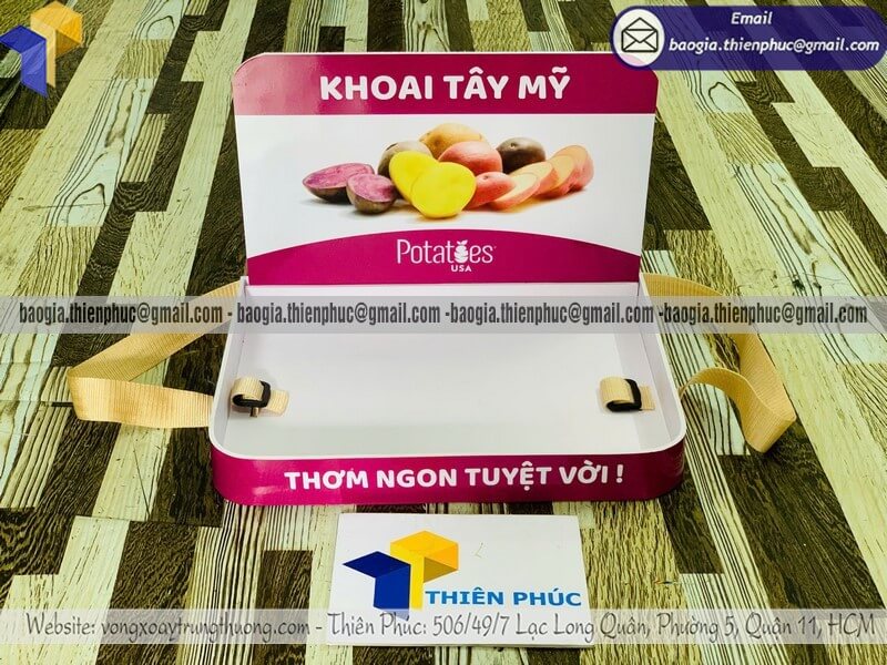 Đây là lựa chọn phổ biến cho các chiến dịch ngắn ngày hoặc cần di chuyển nhiều. Khay có trọng lượng nhẹ, dễ cầm và thao tác linh hoạt. Phù hợp cho sampling tại siêu thị, phát mẫu nhanh hoặc sự kiện có thời gian triển khai ngắn.
