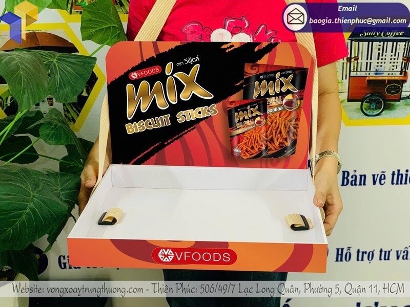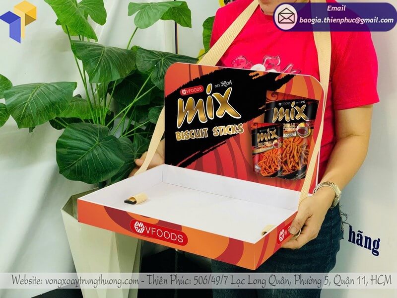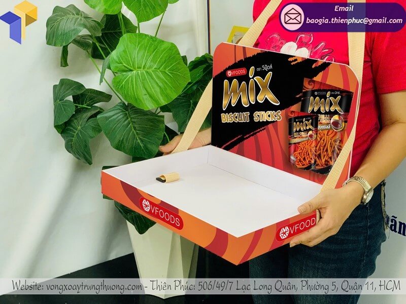 Khay sampling quảng cáo được thiết kế thông minh với kích thước vừa phải, giúp người dùng dễ dàng mang theo khi di chuyển đến các điểm phát mẫu khác nhau mà không gây mệt mỏi hay vướng víu.