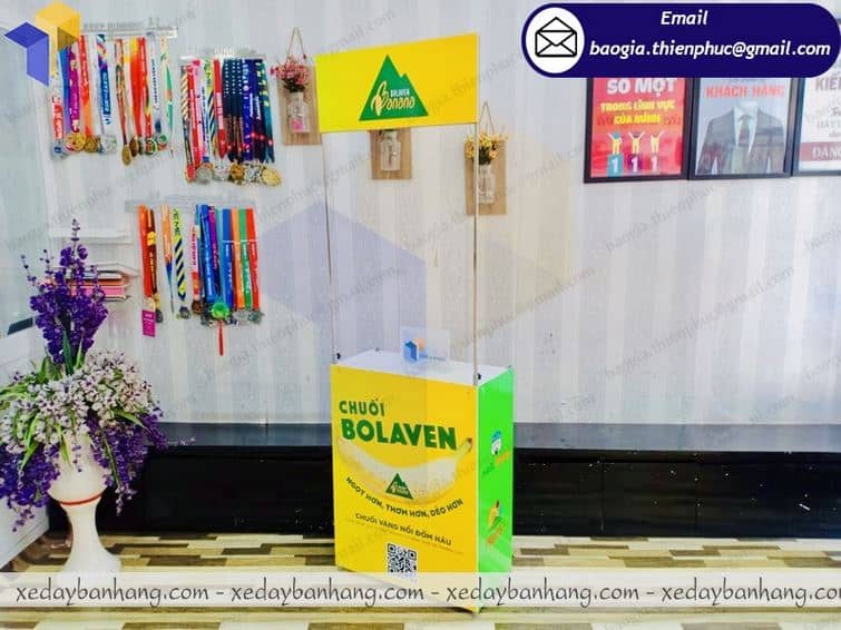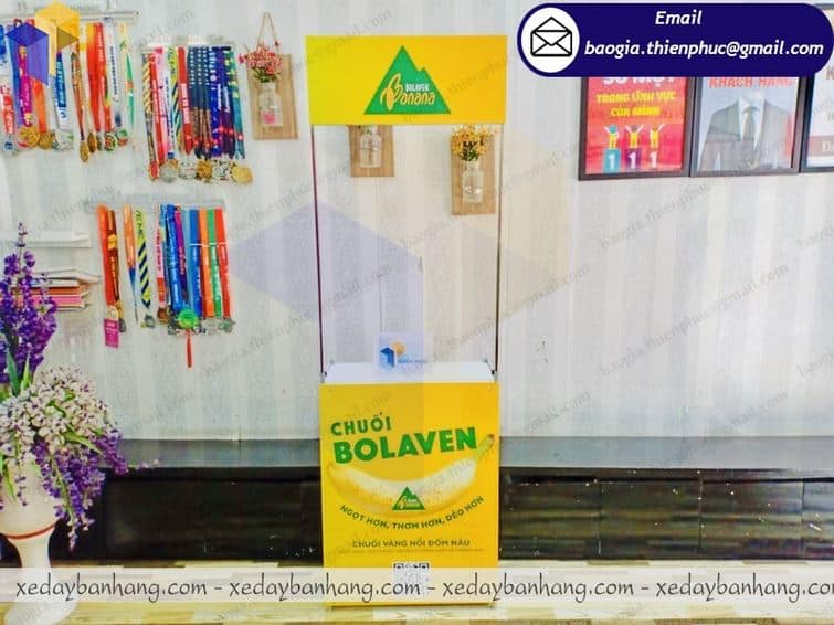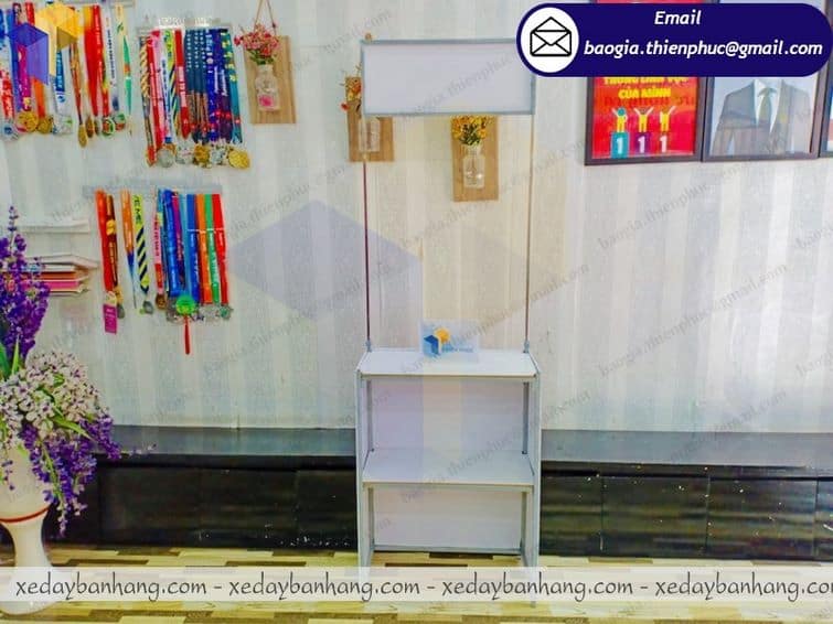 Ưu điểm của booth trưng bày sản phẩm là dùng để trưng bày sản phẩm, quảng cáo sản phẩm hay với cách gọi thân thương là tiếp thị sản phẩm mới đến tay người tiêu dùng trực tiếp. Nó vừa đa năng vừa tiết kiệm được nhiều chi phí cho việc quảng cáo, bàn sampling lắp ráp này được thiết kế dạng tháo lắp ráp nên nhỏ gọn, dễ di chuyển, bạn có thể di chuyển nó đến mọi địa điểm kinh doanh. Những chiếc booth sampling bằng sắt này thường có kích thước chung. Tùy theo nhu cầu sử dụng mà quý khách có thể chọn kích thước thích hợp với sản phẩm mình tiếp thị.